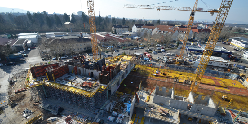 Ed. Züblin AG, Karlsruhe department, in the Freiburg region, which was responsible for the entire reinforced concrete work for the high-rise project, used LOGO.3 Wall formwork from PASCHAL.